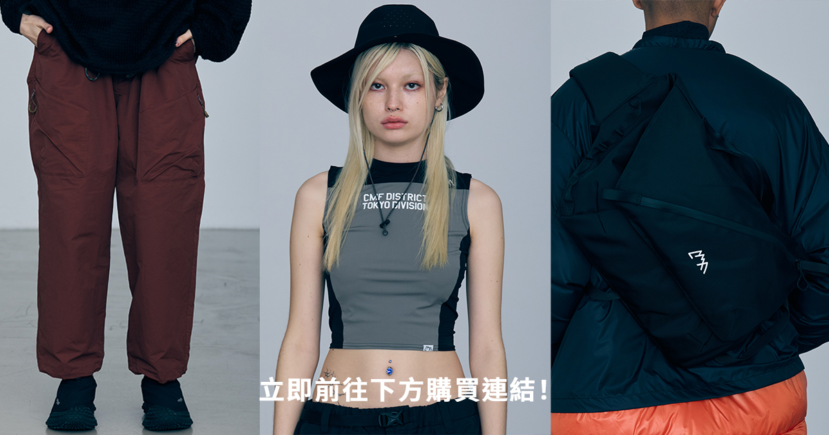 今個秋冬東京都市戶外裝備專家 CMF OUTDOOR GARMENT,進一步以各種實用功能設計與頂級物料選材,為一眾 URBAN OUTDOOR 風格支持者帶來驚喜。首回登場亮點包括有靈感源自極限運動的 BMX TEE、專為女生設計的速乾 CROP TOP、採用 70% COTTON / 30% NYLON 機能布料的 CORD PANTS、獨特雙帽舌結構的 ALL TIME CAP,以及由抗撕裂 CORDURA BALLISTIC NYLON 築構的 MESSENGER BAG,全數單品堅守機能先決的設計宗旨,完美切合都市戶外需要。