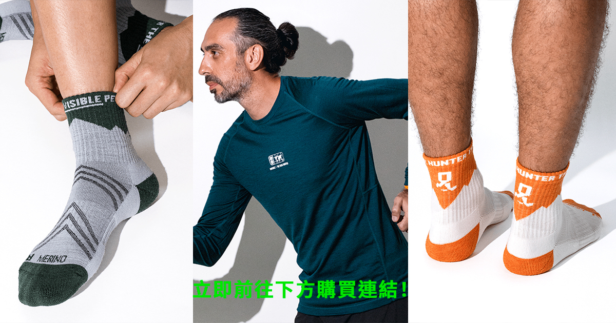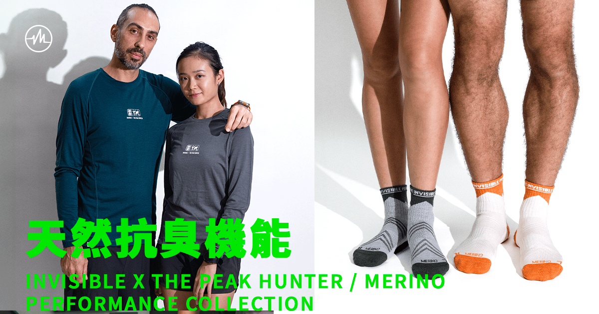淨山組織 INVISIBLE攜手越野跑會 THE PEAK HUNTER 共同打造,以探索世界「跑遊」精神岀發的 MERINO PERFORMANCE COLLECTION,透過具吸汗抗臭與調節體溫功能的 MERINO WOOL 天然彈性物料,分別帶來高度舒適的 LONG SLEEVE TRAIL RUNNING T-SHIRT 以及 MID CREW TRAIL SOCKS,當中部分收益將捐贈支持香港山野清潔運動和青少年越跑項目。