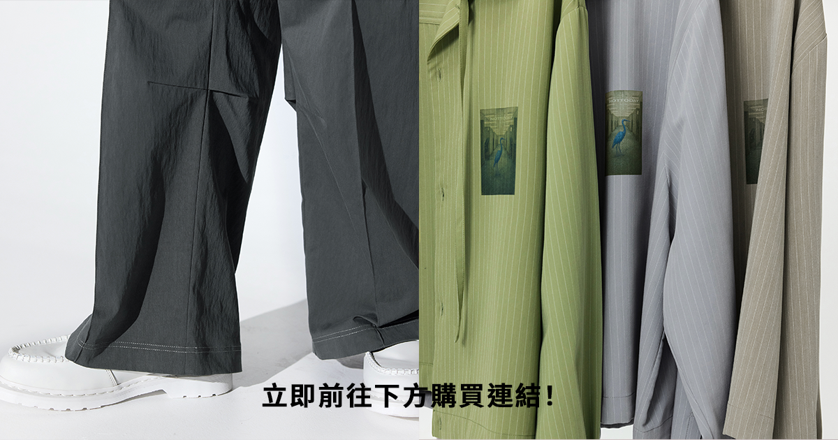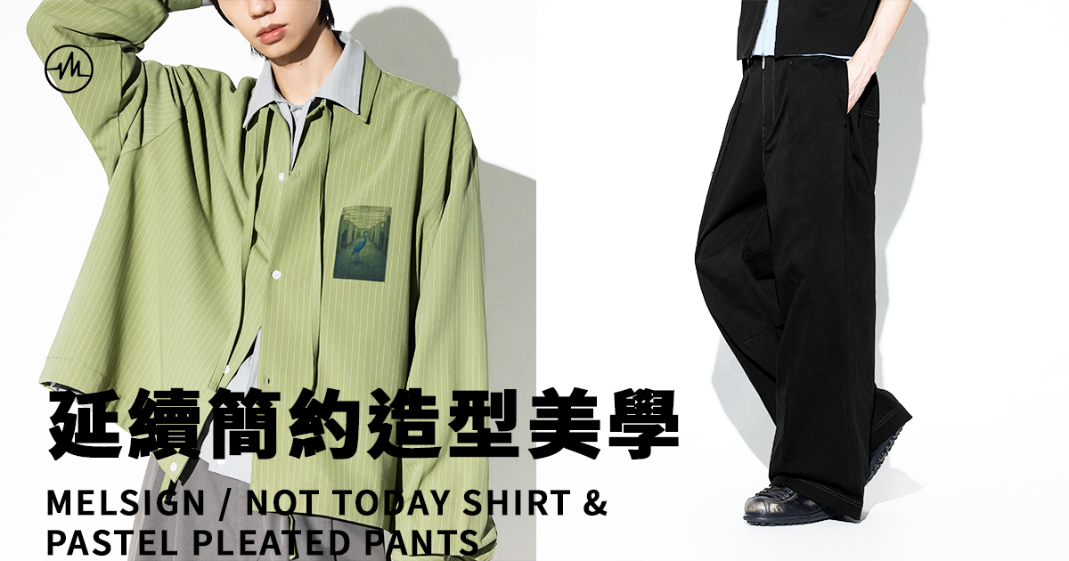 承接上星期登場的 CONCEPT PHOTOGRAPHER TEE,MELSIGN 今周間緊接帶來兩枚全新春夏單品:NOT TODAY SHIRT & PASTEL PLEATED PANTS。前者延續上回的幽默創作主題,再度透過辦公室主題圖像配合 NOT TODAY 字樣細節,表達出長時間工作的精神狀態;至於同步登場的 PASTEL PLEATED PANTS 則通過百搭直筒剪裁設定,配合增加立體感的打摺細節,以及褲腳位置能夠隨意改變長度和形態的鈕扣配置,進一步為整體造型帶來層次提升。
