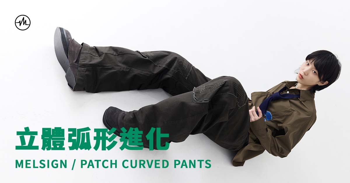 延續標誌性的極簡美學風格,新登場的 MELSIGN / PATCH CURVED PANTS 就特別以時尚圈所流行的弧形剪裁為號召,再透過具質感的挺身純棉斜布提升著用時的立體效果。至於膝蓋位置額外加入的不規則拼布設計、不對稱的漩渦式撞色車線,還有低調中呈現獨特性的破損加工處理,更令到整體造型完美契合 Y2K 造型的層次需要。